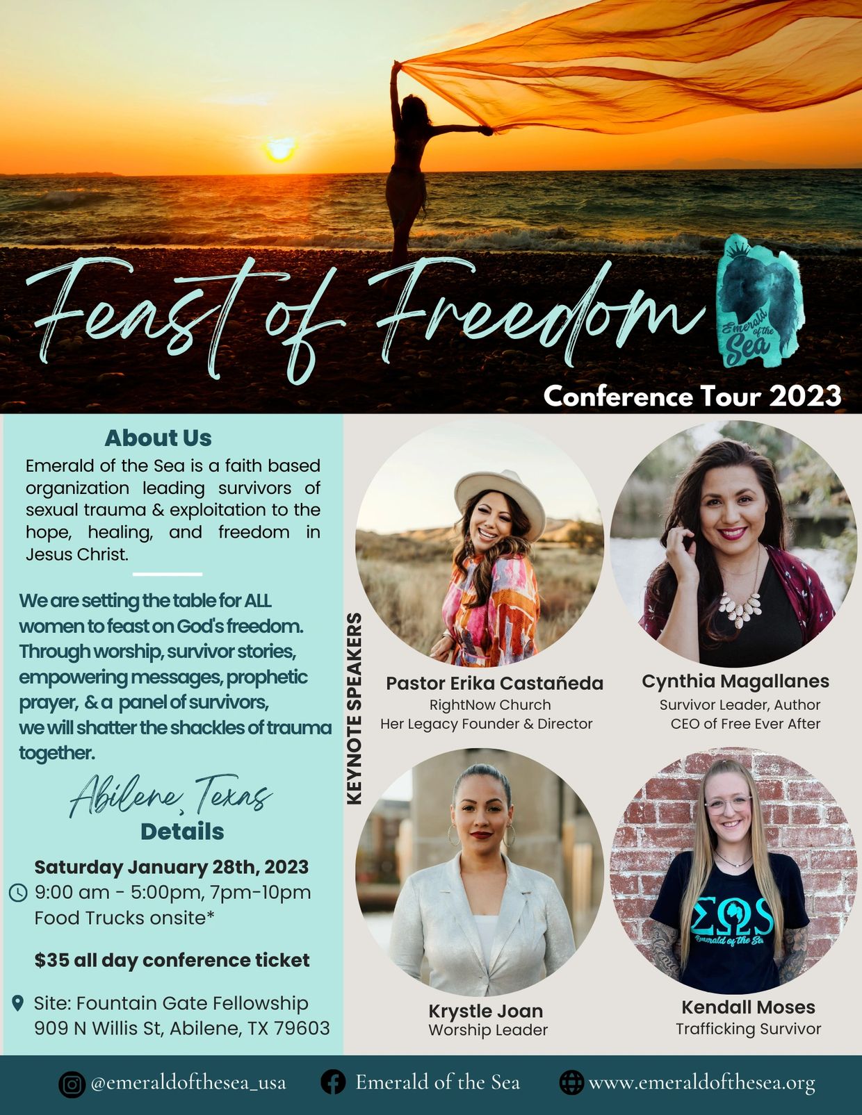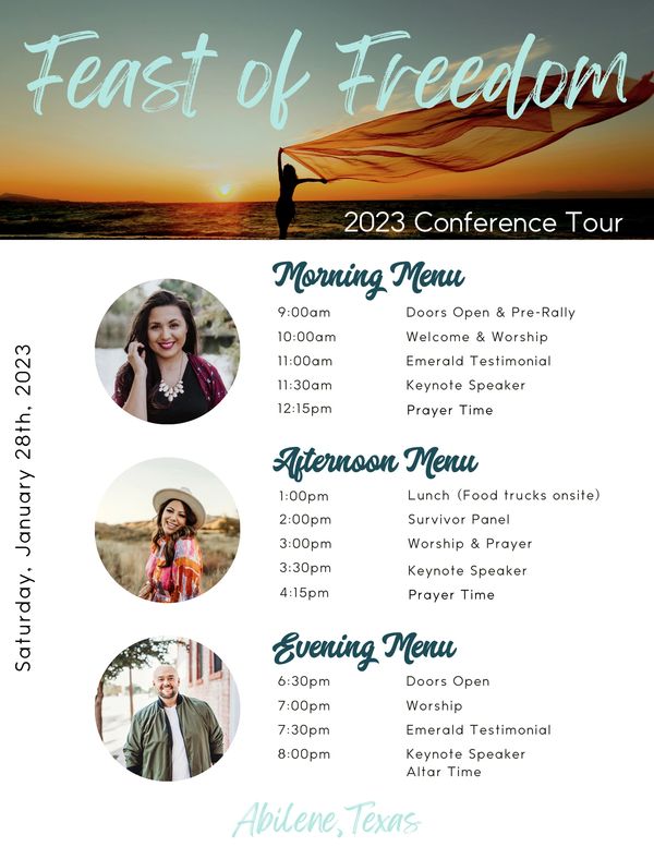 Through worship, survivor stories, empowering messages, prophetic prayer, & a panel of survivors, we will shatter the shackles of trauma together.